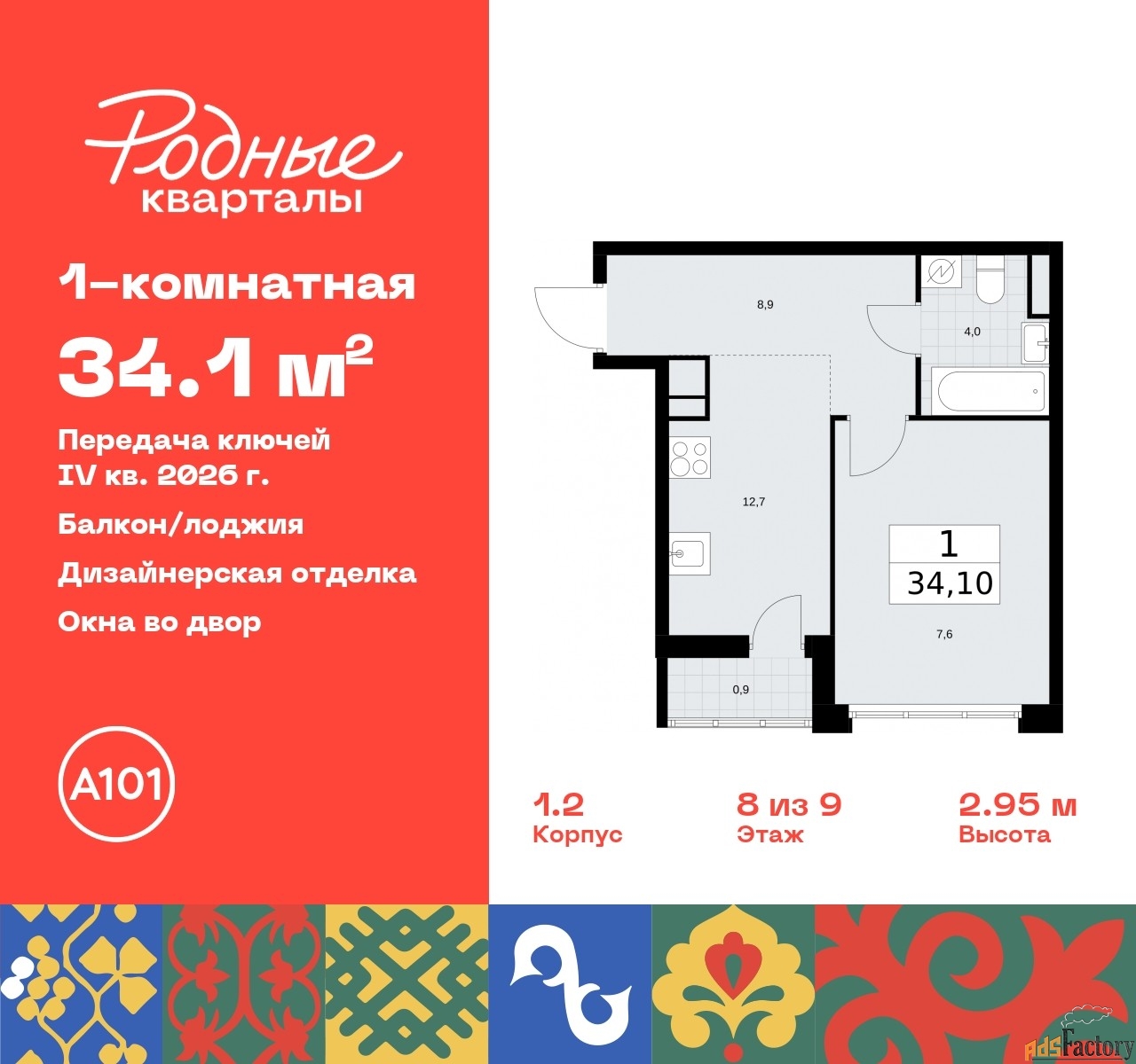 | Общая площадь (кв.м) | 34.1 |
