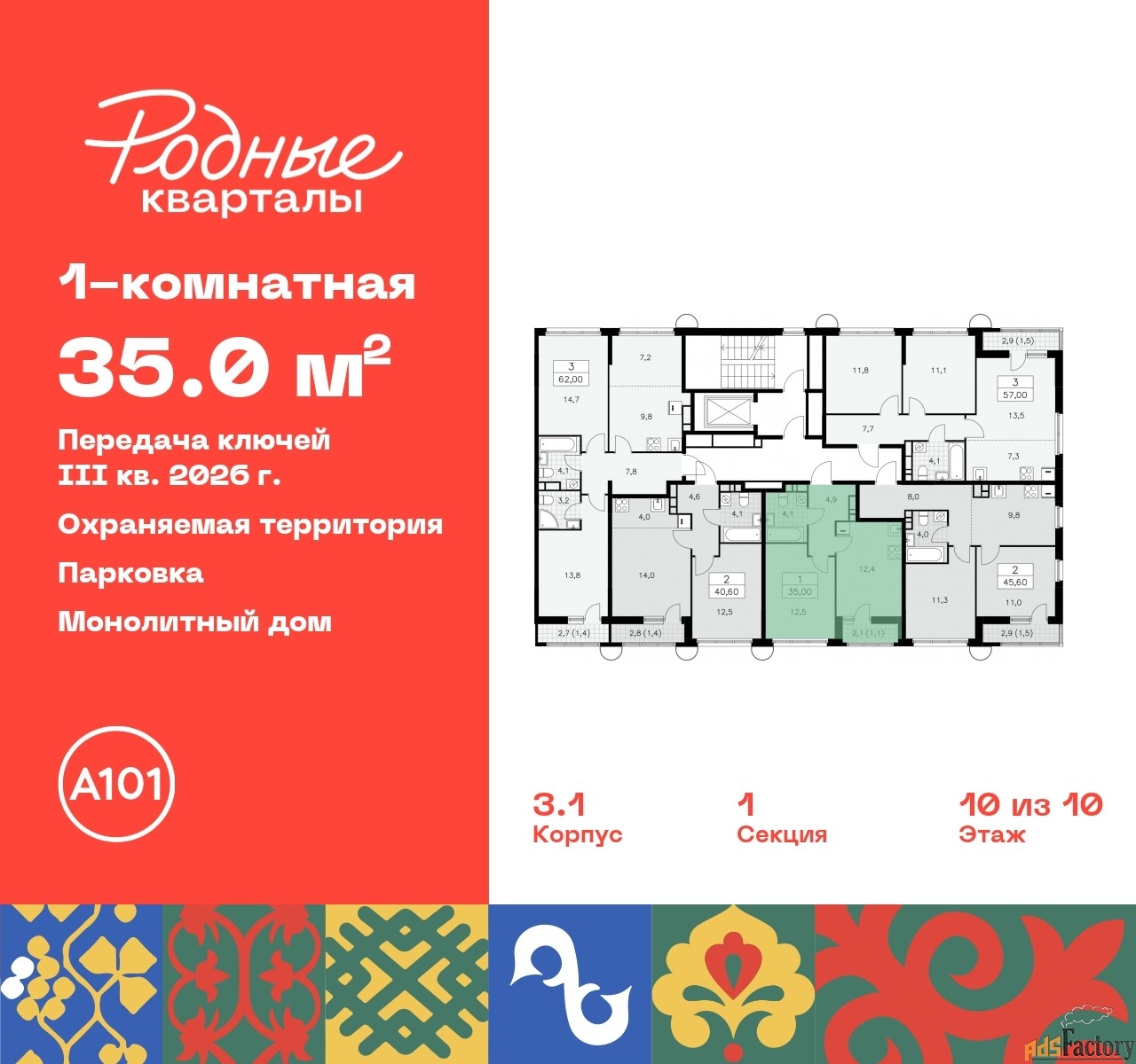 Дом монолитный, черырехподъездный, высотой 10 этажей. Квартира находится в 1-й секции в корпусе 3.1. На этаже 5 квартир. В подъезде 1 грузовой лифт. Начало строительства - 2 квартал 2024 года. Окончание строительства - 3 квартал 2026 года. Оформление сделки по договору долевого участия.