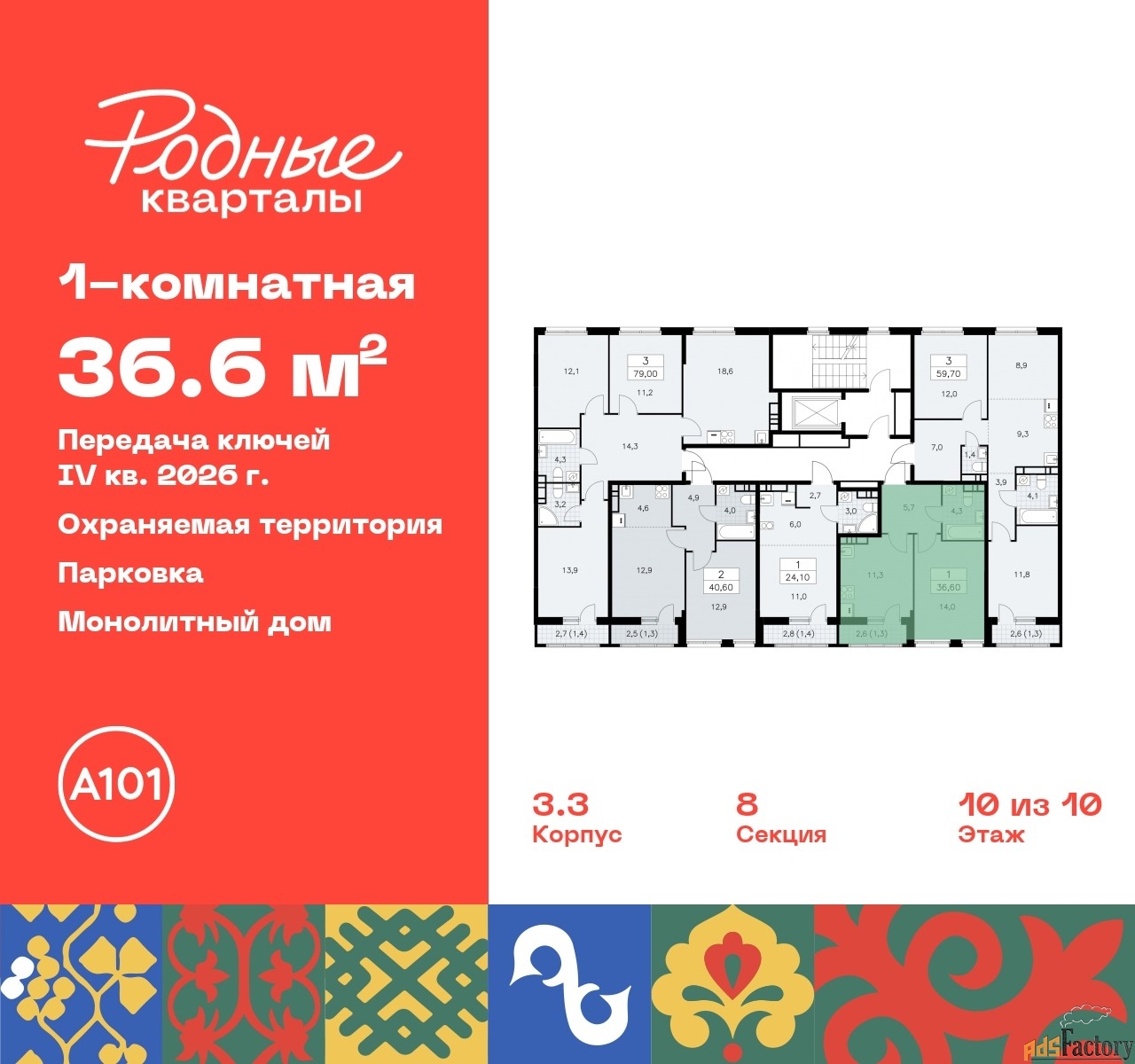Дом монолитный, черырехподъездный, переменной этажности, от 9 до 10 этажей. Квартира находится во 2-й секции высотой 10 этажей в корпусе 3.3. На этаже 5 квартир. В подъезде 1 грузовой лифт. Начало строительства - 2 квартал 2024 года. Окончание строительства - 4 квартал 2026 года. Оформление сделки по договору долевого участия.