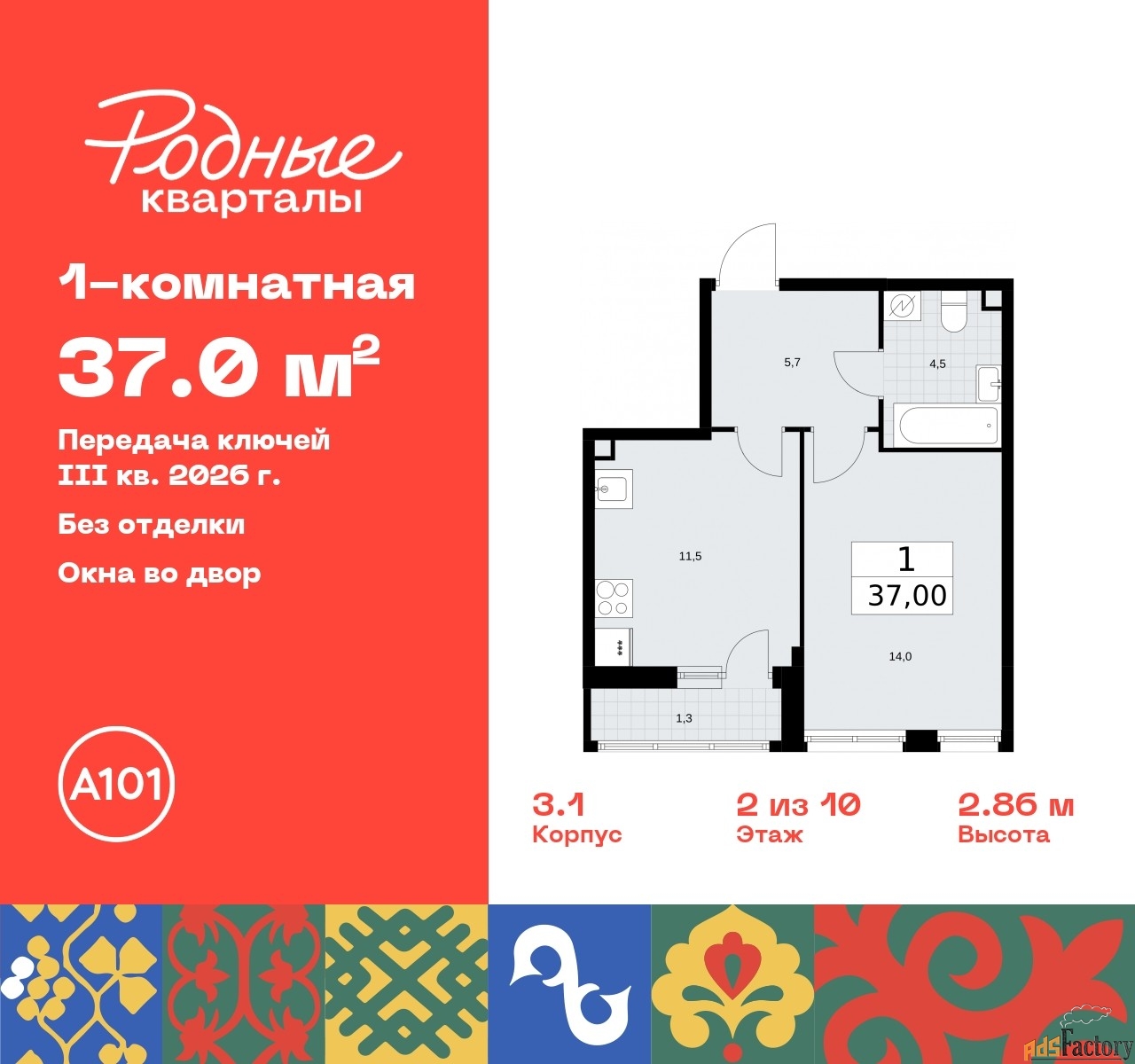 | Общая площадь (кв.м) | 37 |