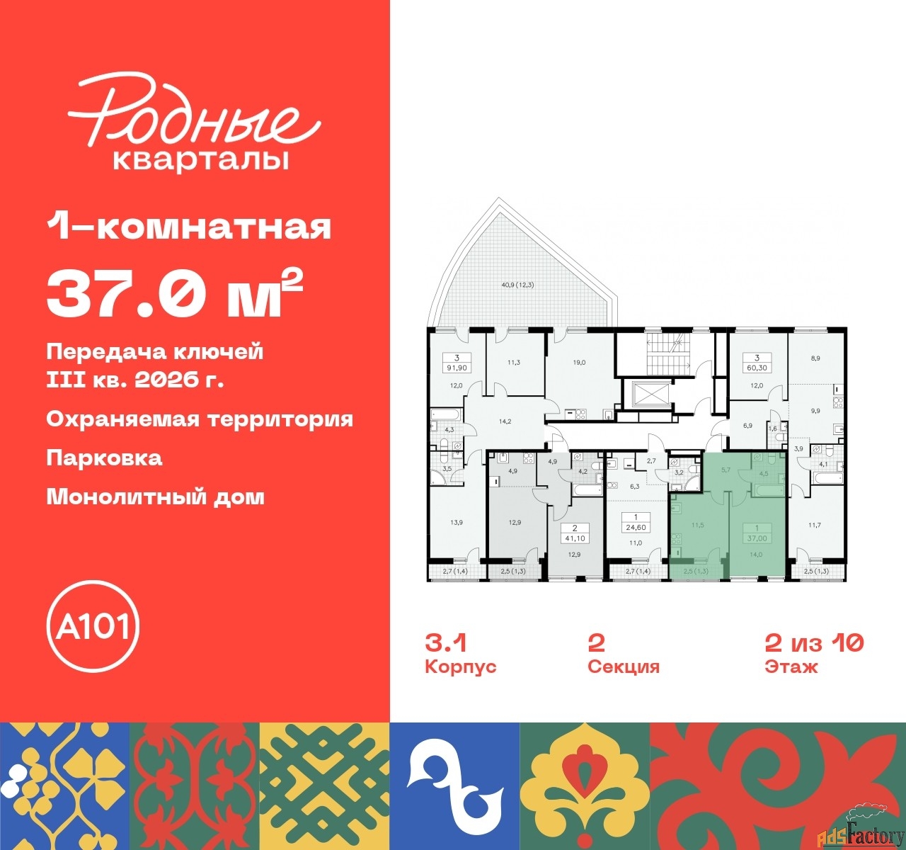| Общая площадь (кв.м) | 37 |