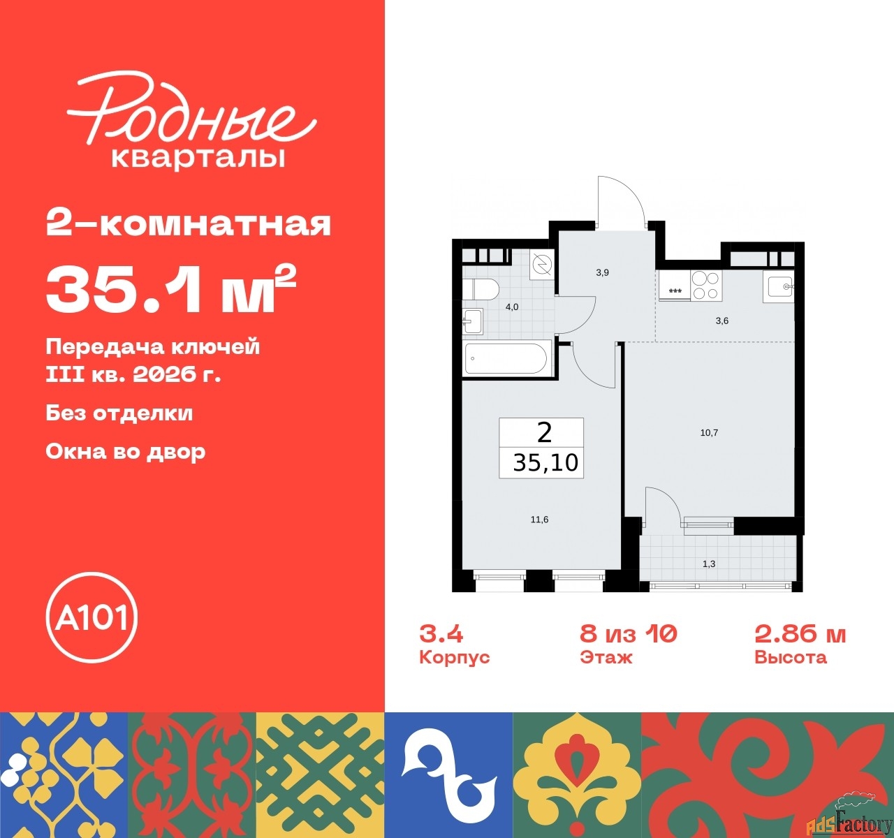 | Общая площадь (кв.м) | 35.1 |