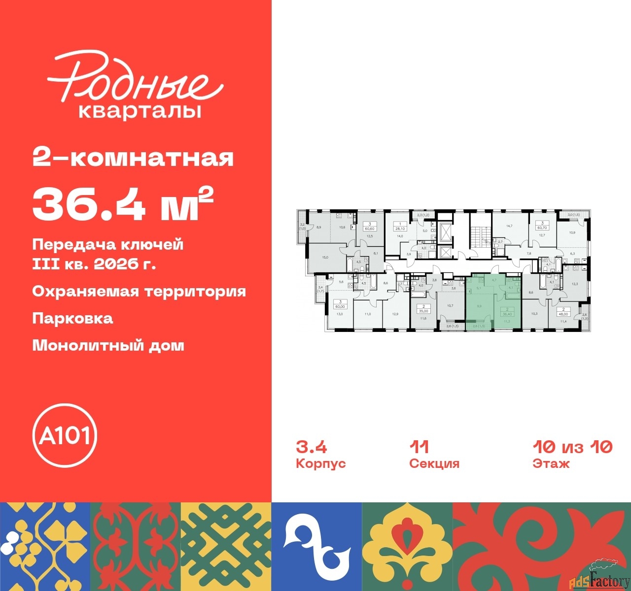 | Общая площадь (кв.м) | 36.4 |