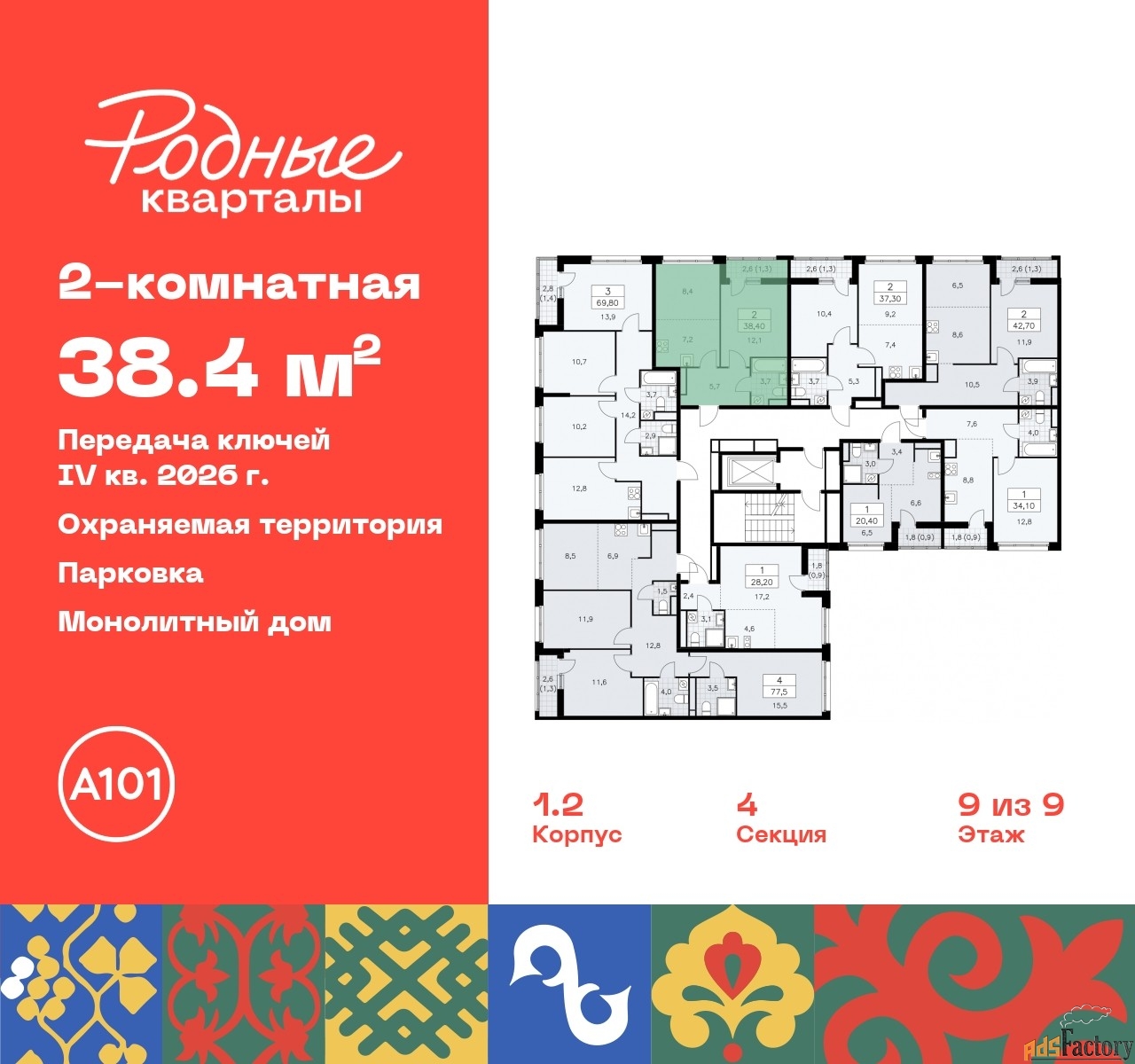 Дом монолитный, многоподъездный, высотой 9 этажей. Квартира находится в 3-й секции в корпусе 1.2. На этаже 8 квартир. В подъезде 1 грузовой лифт. Начало строительства - 4 квартал 2023 года. Окончание строительства - 4 квартал 2026 года. Оформление сделки по договору долевого участия.