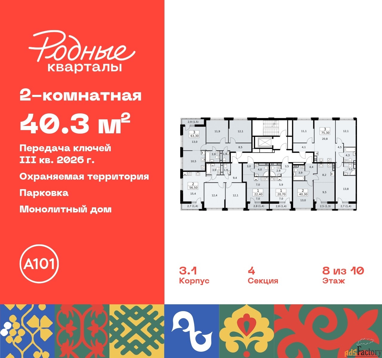 Дом монолитный, черырехподъездный, высотой 10 этажей. Квартира находится в 4-й секции в корпусе 3.1. На этаже 6 квартир. В подъезде 1 грузовой лифт. Начало строительства - 2 квартал 2024 года. Окончание строительства - 3 квартал 2026 года. Оформление сделки по договору долевого участия.