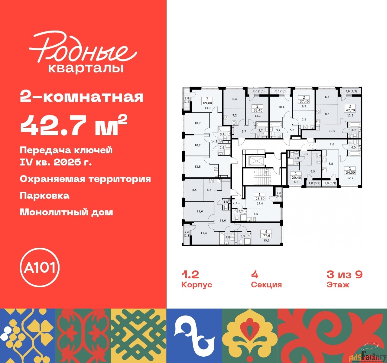 Дом монолитный, многоподъездный, высотой 9 этажей. Квартира находится в 3-й секции в корпусе 1.2. На этаже 8 квартир. В подъезде 1 грузовой лифт. Начало строительства - 4 квартал 2023 года. Окончание строительства - 4 квартал 2026 года. Оформление сделки по договору долевого участия.