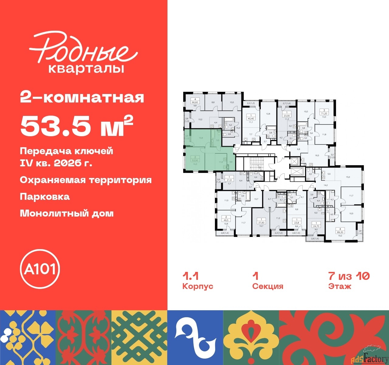 Квартира находится в корпусе 1.1. Дом монолитный, одноподъездный, высотой 10 этажей. На этаже 11 квартир. В подъезде 1 пассажирский и 1 грузовой лифт. Начало строительства - 4 квартал 2023 года. Окончание строительства - 4 квартал 2026 года. Оформление сделки по договору долевого участия.
