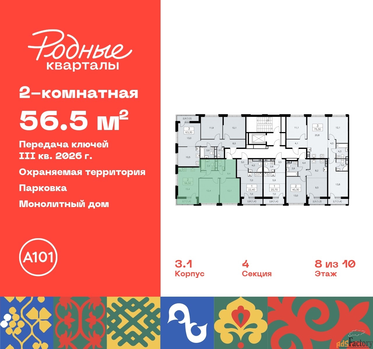| Общая площадь (кв.м) | 56.5 |