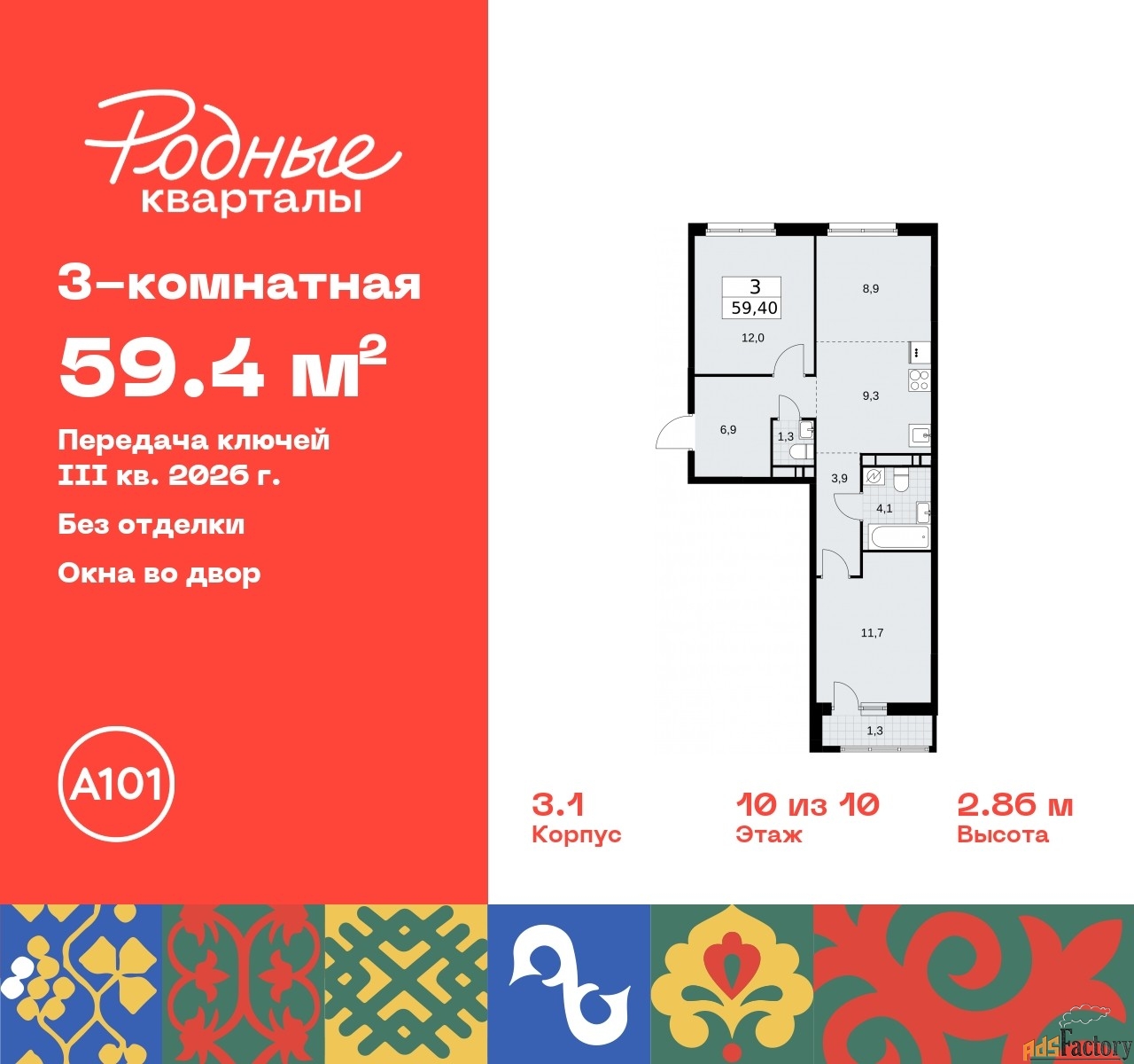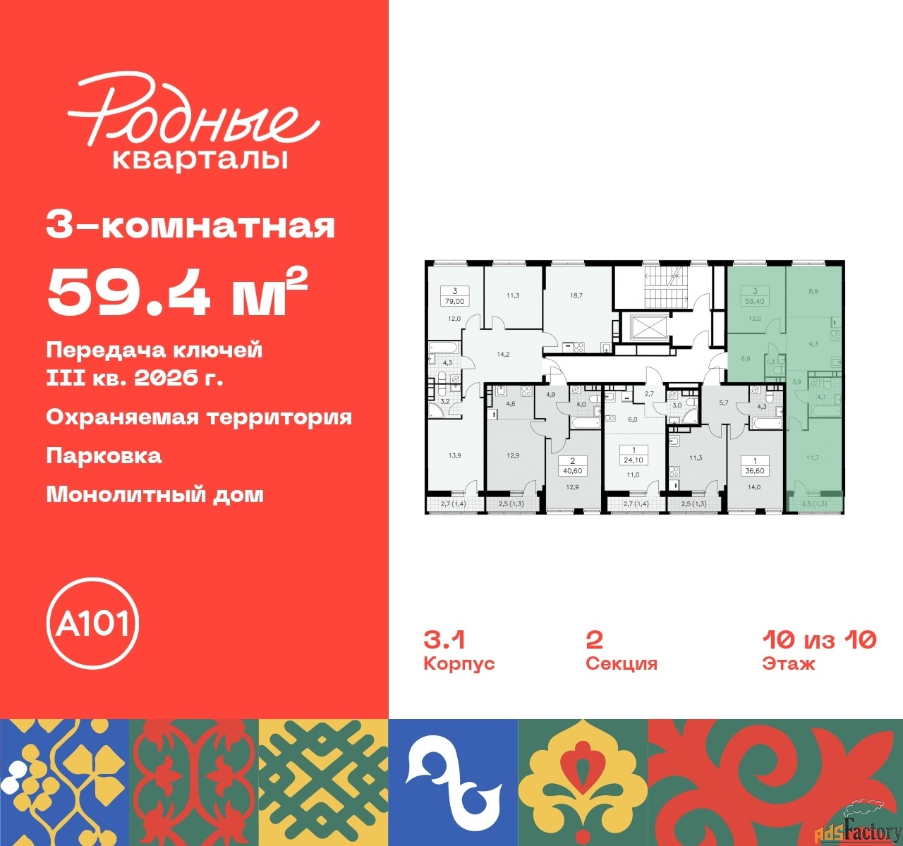 | Общая площадь (кв.м) | 59.4 |