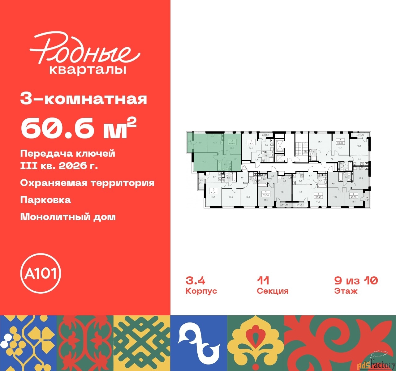 Квартира находится в корпусе 3.4. Дом монолитный, одноподъездный, высотой 10 этажей. На этаже 7 квартир. В подъезде 1 пассажирский и 1 грузовой лифт. Начало строительства - 2 квартал 2024 года. Окончание строительства - 3 квартал 2026 года. Оформление сделки по договору долевого участия.