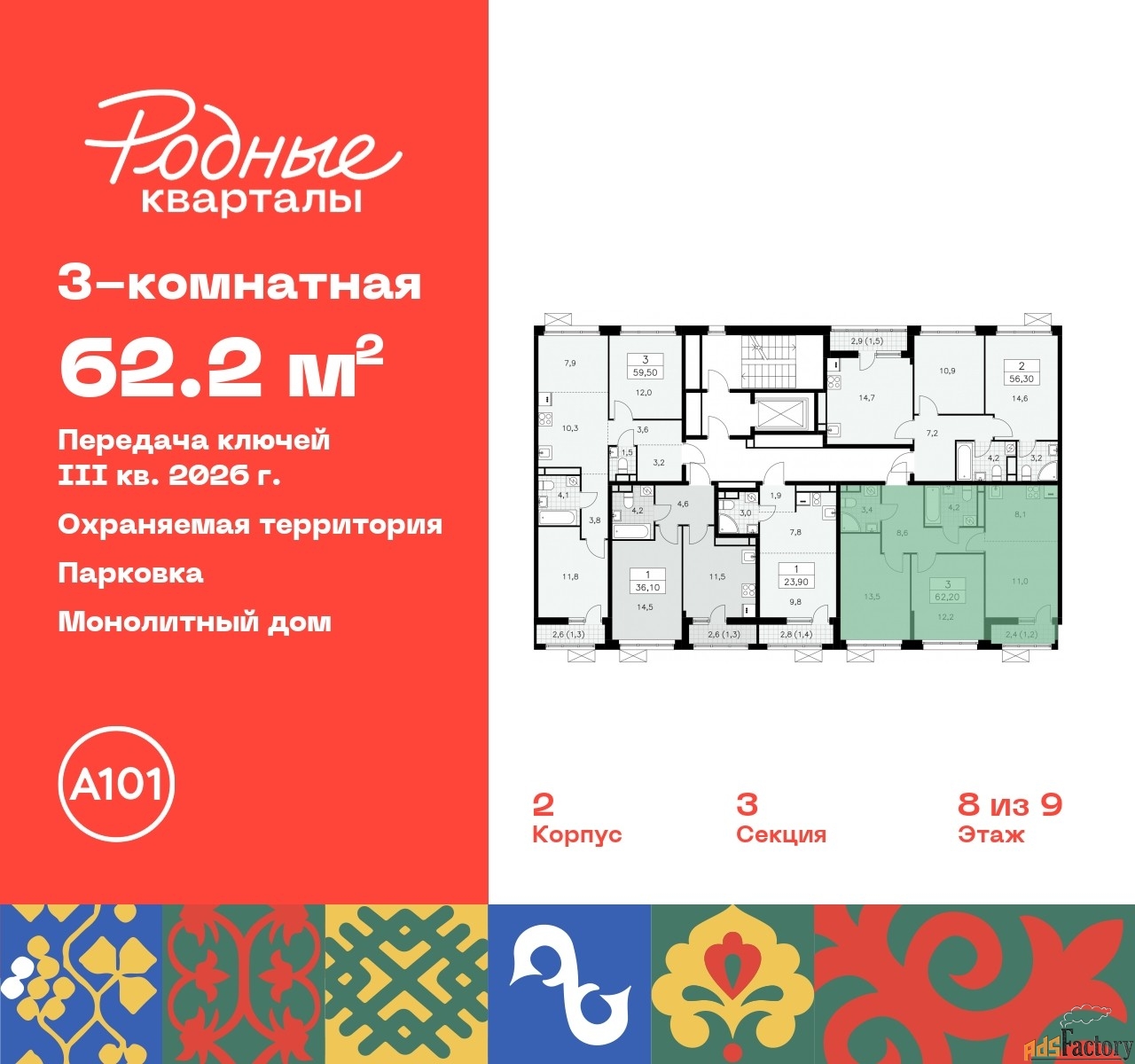 Общая площадь (кв.м) | 62.2 |