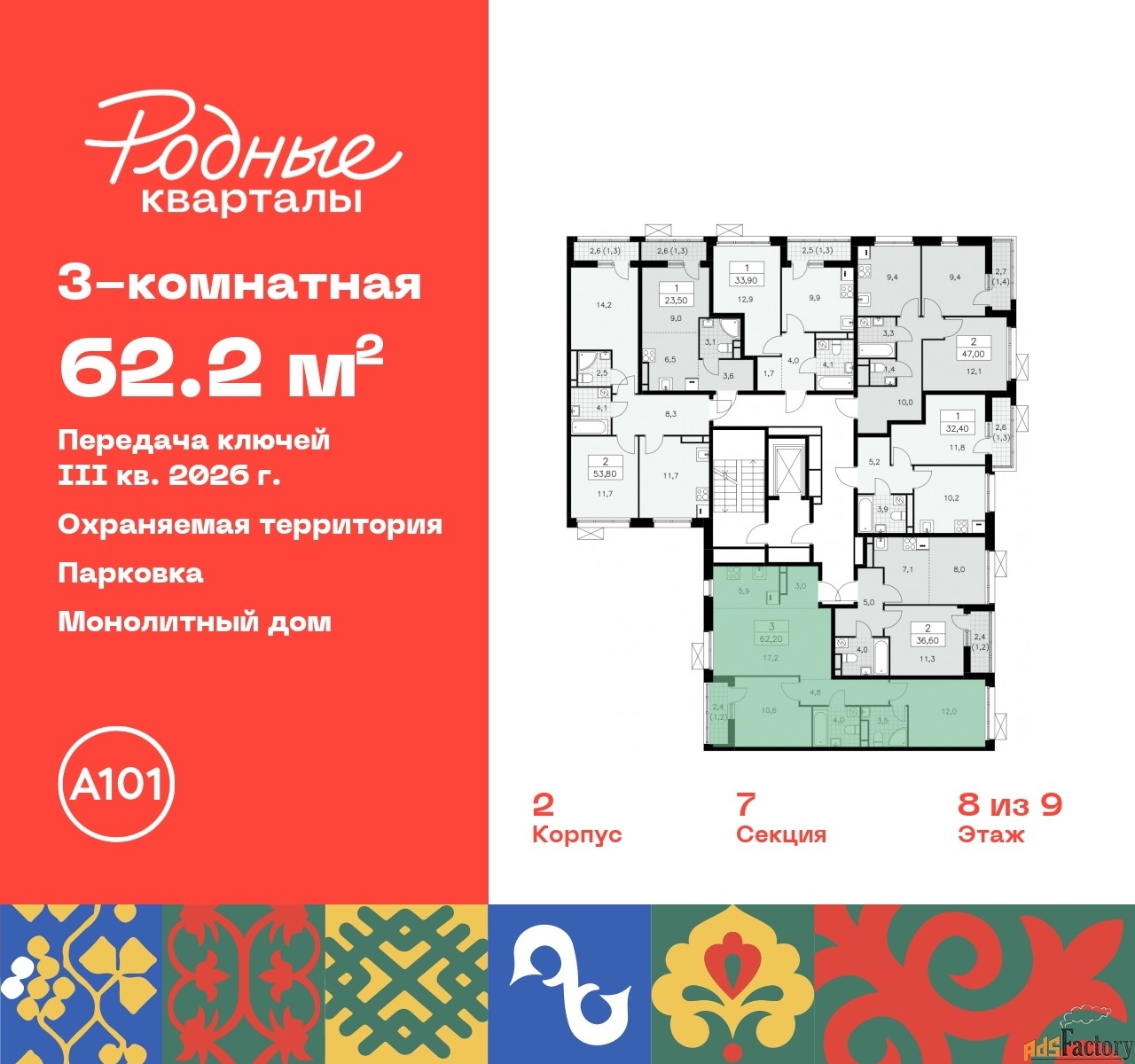 ЖК «Родные кварталы» строится в Новомосковском округе столицы, в 15 минутах на автомобиле от аэропорта «Внуково». Район обеспечен удобными выездами на три крупные современные автотрассы. Здесь уже работает и активно развивается система наземного общественного транспорта, включая междугородние рейсы. Интенсивное развитие локации обеспечивают две действующие станции крупных транспортных линий: метро (станция «Внуково») и МЦД (станция «Толстопальцево»). (AQID02295647)