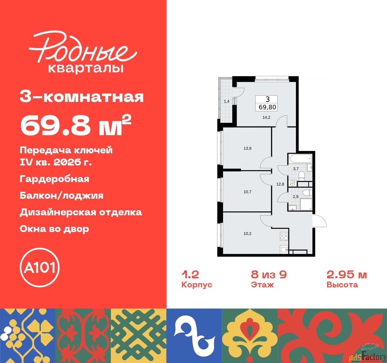 ЖК «Родные кварталы» строится в Новомосковском округе столицы, в 15 минутах на автомобиле от аэропорта «Внуково». Район обеспечен удобными выездами на три крупные современные автотрассы. Здесь уже работает и активно развивается система наземного общественного транспорта, включая междугородние рейсы. Интенсивное развитие локации обеспечивают две действующие станции крупных транспортных линий: метро (станция «Внуково») и МЦД (станция «Толстопальцево»). (AQID02317843)