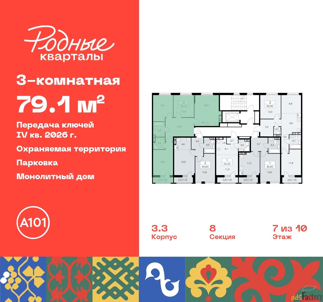 Дом монолитный, черырехподъездный, переменной этажности, от 9 до 10 этажей. Квартира находится во 2-й секции высотой 10 этажей в корпусе 3.3. На этаже 5 квартир. В подъезде 1 грузовой лифт. Начало строительства - 2 квартал 2024 года. Окончание строительства - 4 квартал 2026 года. Оформление сделки по договору долевого участия.