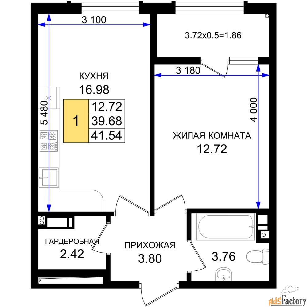 Жилая площадь 12.72 м2, кухня 16.98 м2, предчистовая отделка, комнаты изолированные.
