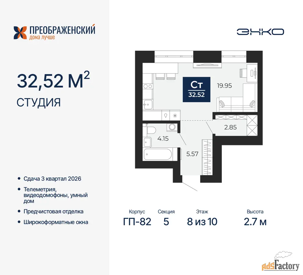 | Высота потолков (м.) | 2.7 |