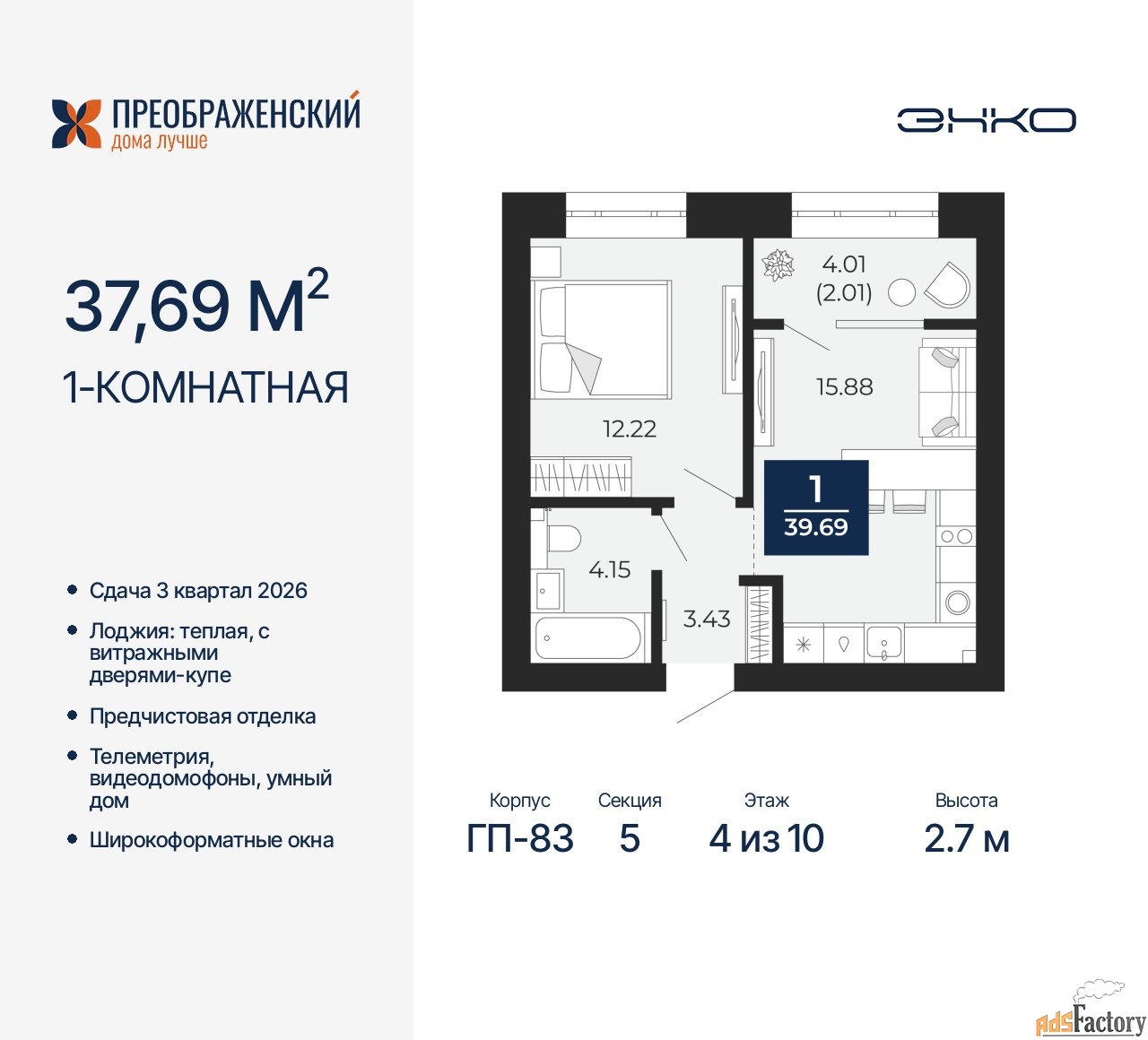 | Общая площадь (кв.м) | 37.69 |