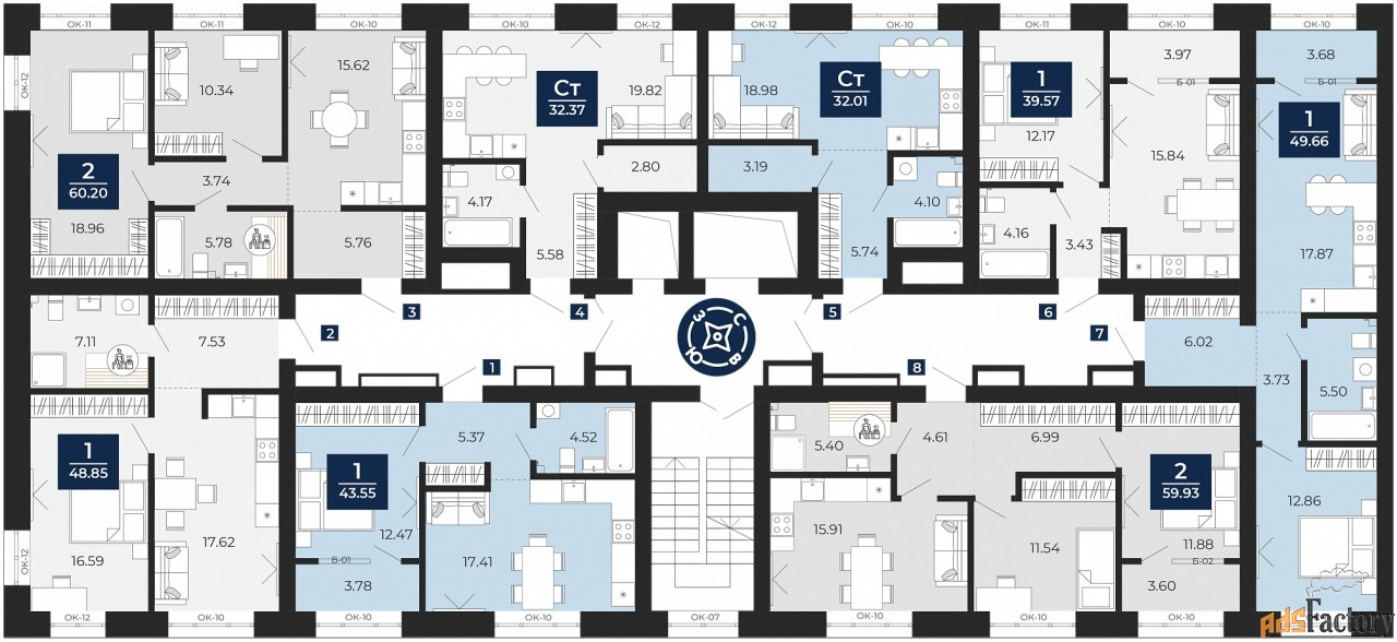 Чтобы в квартирах было как можно больше свободного пространства, мы предусмотрели индивидуальные кладовые на цокольном этаже.