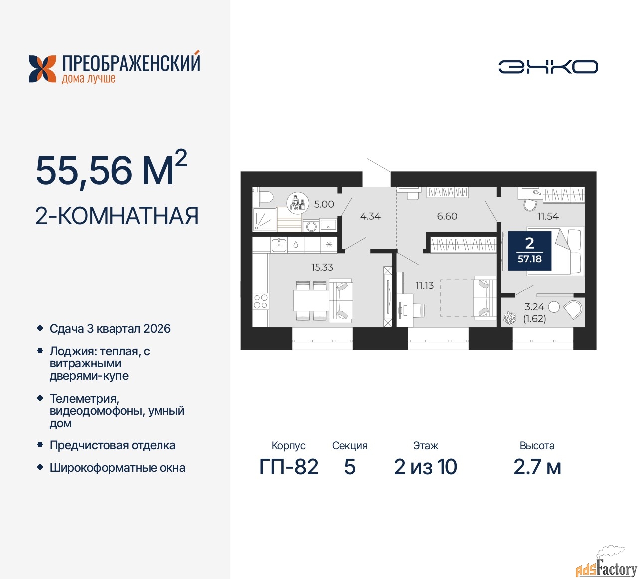 Дом монолитный, многоподъездный, переменной этажности, от 8 до 12 этажей. Квартира находится в 5-й секции высотой 10 этажей в корпусе ГП-82. На этаже 7 квартир. В подъезде 1 пассажирский и 1 грузовой лифт. Окончание строительства - 3 квартал 2026 года. Оформление сделки по договору долевого участия.