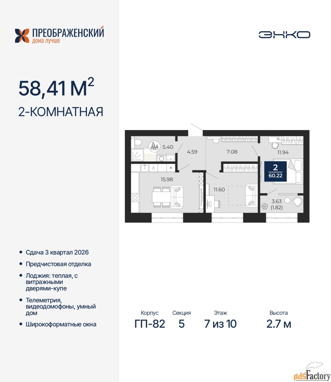 | Общая площадь (кв.м) | 58.41 |