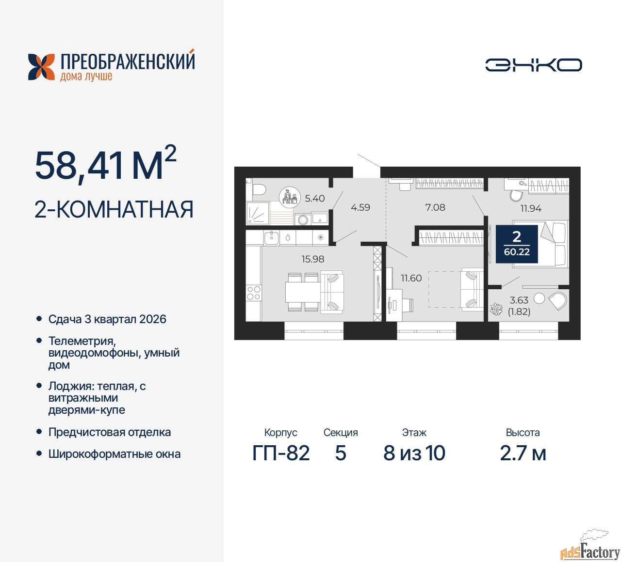 | Общая площадь (кв.м) | 58.41 |