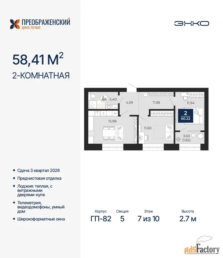 | Общая площадь (кв.м) | 58.41 |