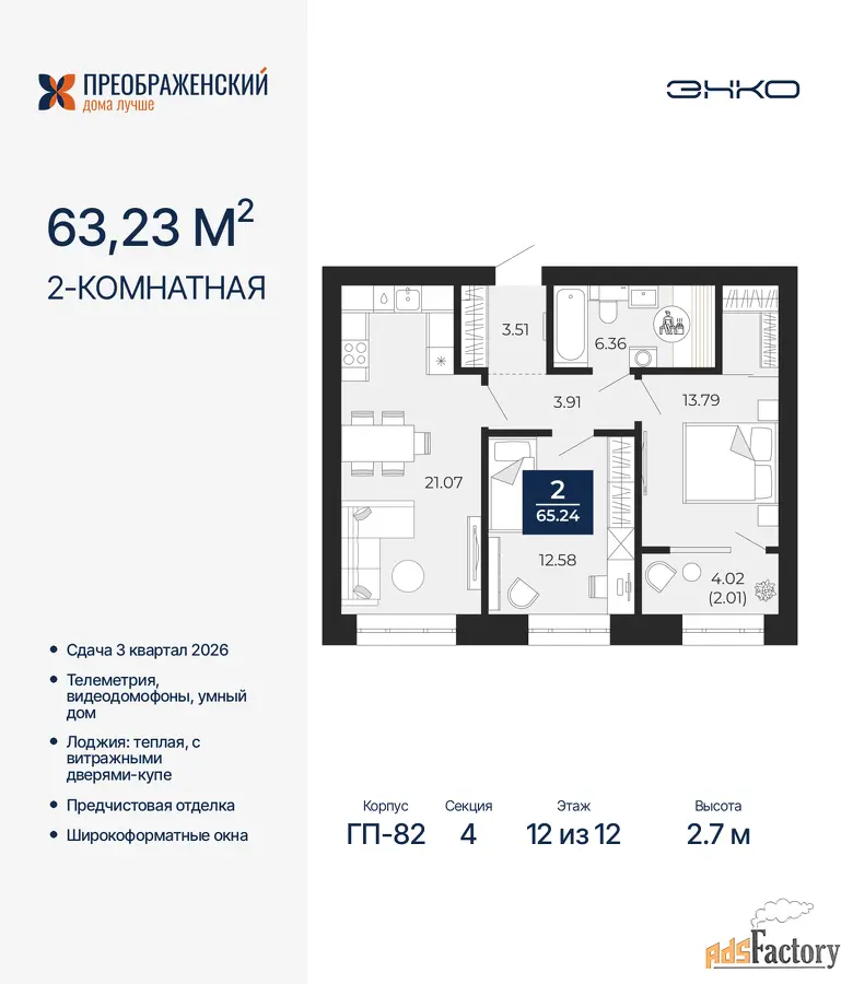 | Общая площадь (кв.м) | 63.23 |