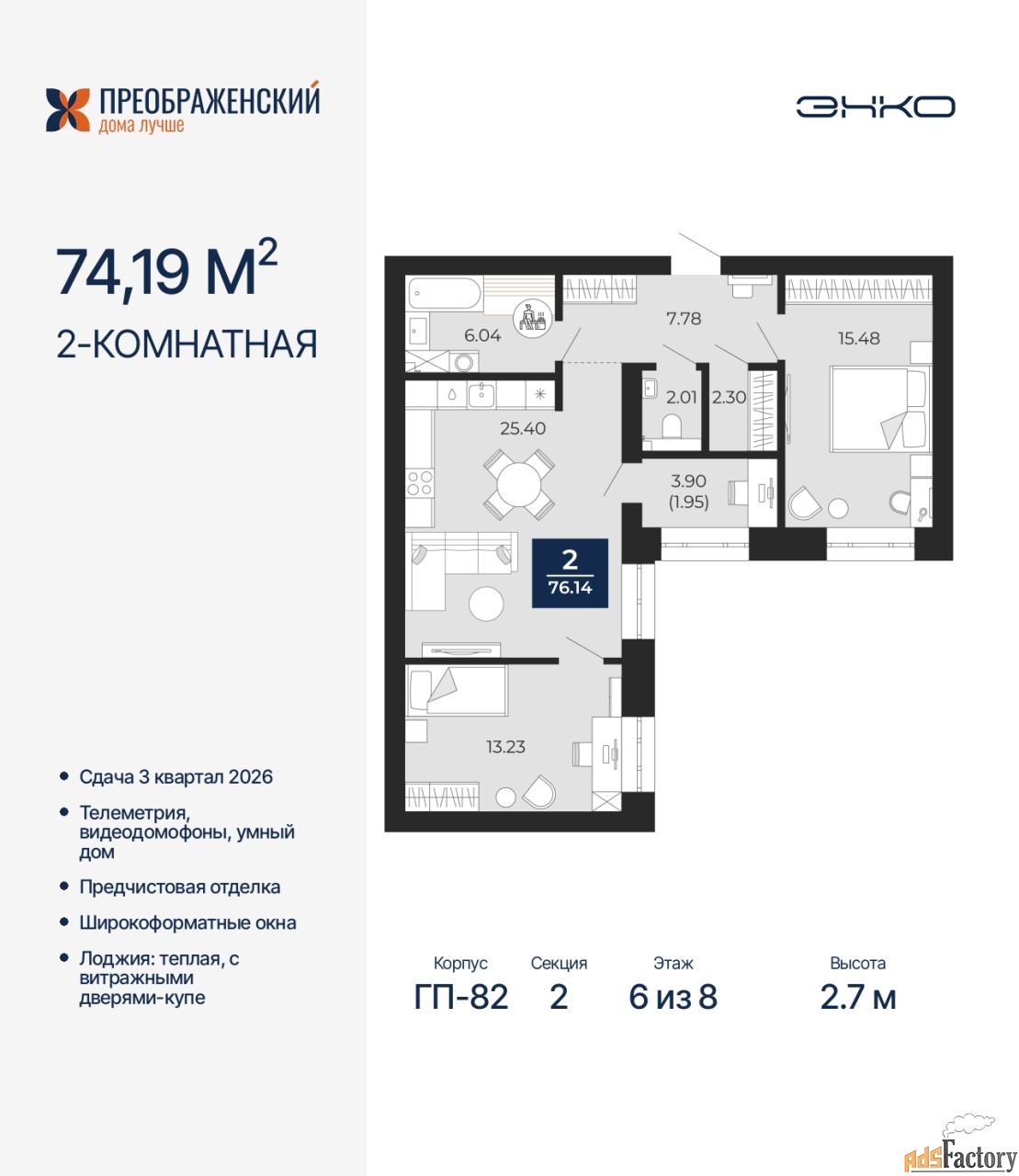 | Общая площадь (кв.м) | 74.19 |