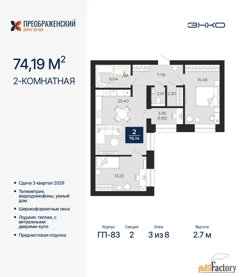 | Общая площадь (кв.м) | 74.19 |