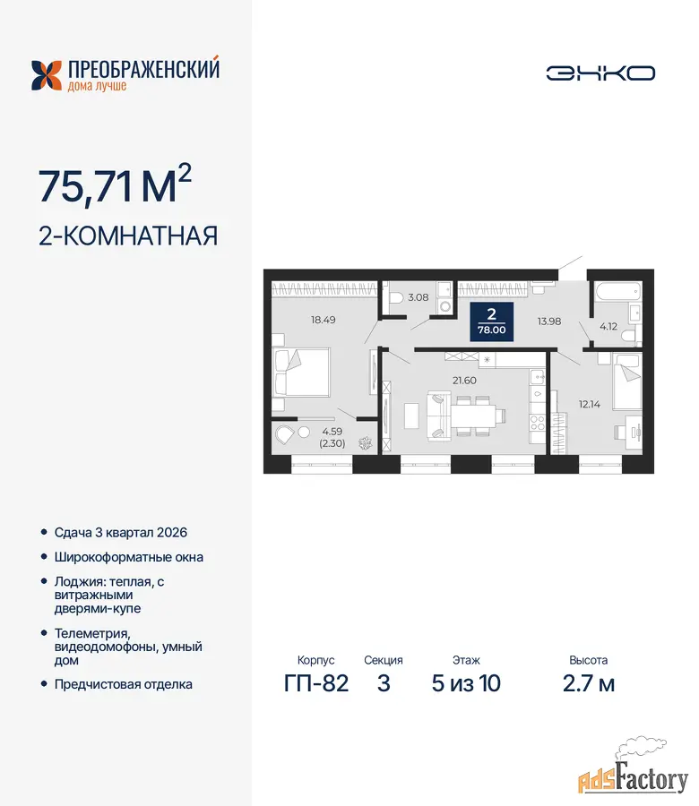 | Общая площадь (кв.м) | 75.71 |