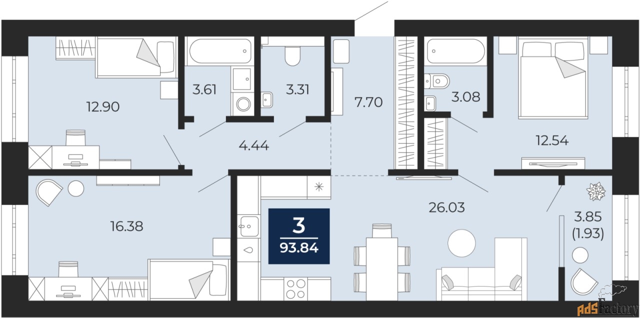 Дом монолитный, многоподъездный, переменной этажности, от 8 до 12 этажей. Квартира находится во 2-й секции высотой 8 этажей в корпусе ГП-82. На этаже 6 квартир. В подъезде 1 пассажирский и 1 грузовой лифт. Окончание строительства - 3 квартал 2026 года. Оформление сделки по договору долевого участия.