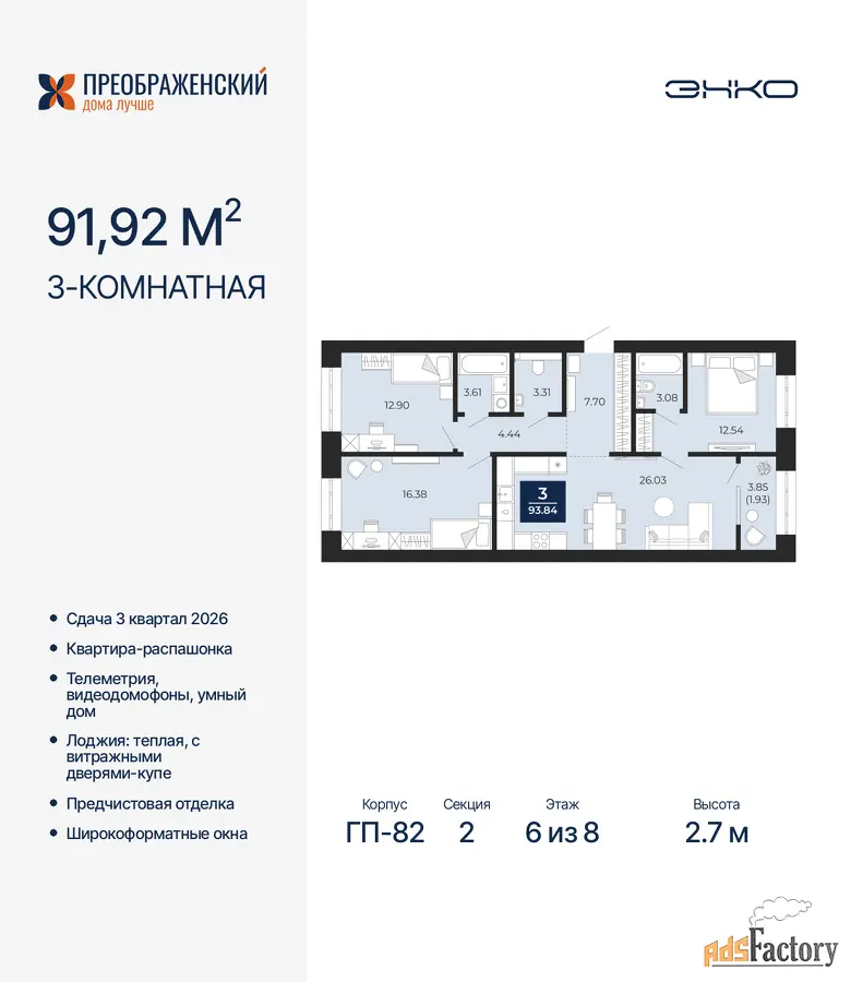| Общая площадь (кв.м) | 91.92 |