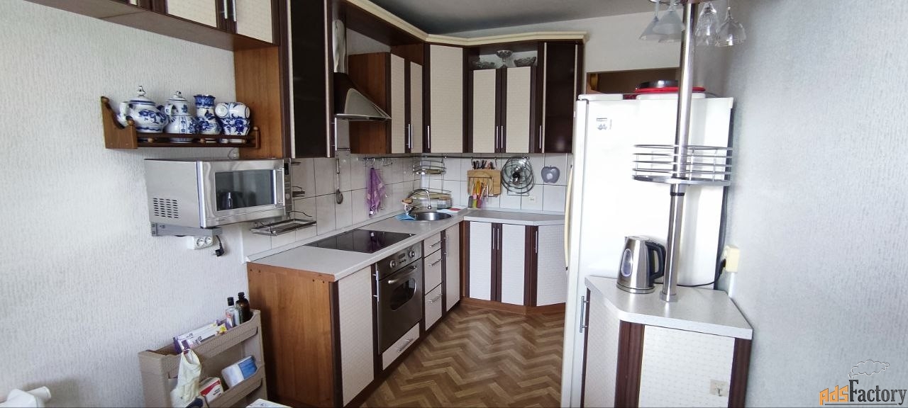 Дом 2005 г постройки, очень тёплый. Квартира в хорошем состоянии, распашонка (окна на юг-север), общая площадь 62,8 кв.м, изолированные комнаты 16,7 / 12 / 8,3 кв.м, кухня 9,9 кв.м. Большая застеклённая утеплённая лоджия с видом на лес, южная сторона. Санузел раздельный, в плитке. Окна ПВХ.