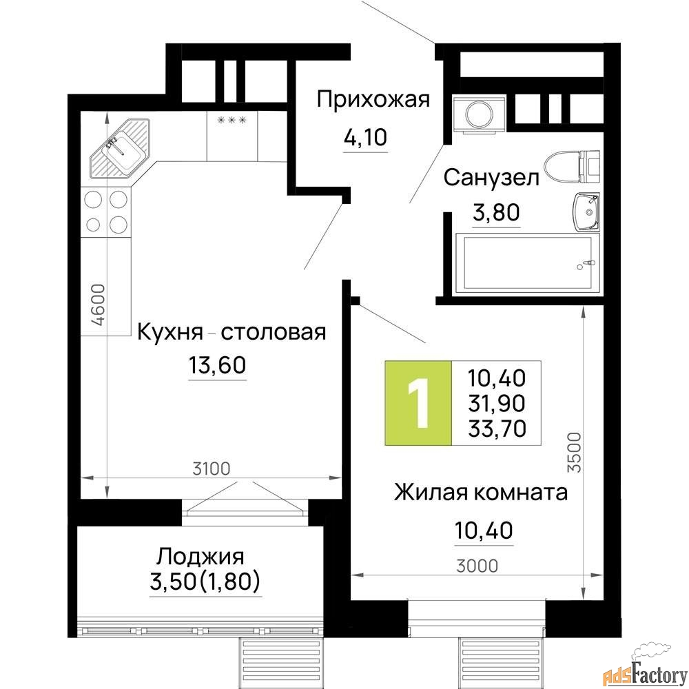 Жилая площадь 10.4 м2, кухня 13.6 м2, черновая отделка, комнаты изолированные.