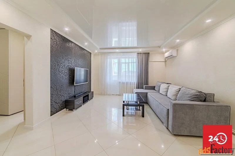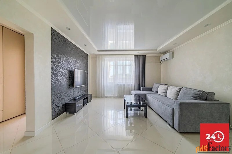 • Квартира с новым дизайнерским ремонтом и высокими потолками. В подарок новому владельцу остается всё, что видите на фото, включая технику, а это-три телевизора, холодильник, посудомоечная машина, микроволновка, стиральная машинка, два кондиционера, духовой шкаф, вытяжка и бойлер. При ремонте квартиры использовались современные отделочные материалы- вам не придется ничего доделывать и переделывать. Можно будет только завести личные вещи и наслаждаться жизнью.