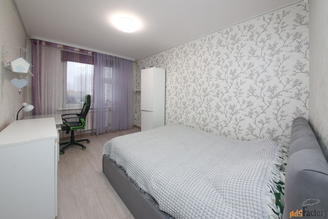 Удобная планировка, застекленная лоджия с выходом из кухни, комнаты изолированные на 2 стороны дома, сан.узел раздельный.