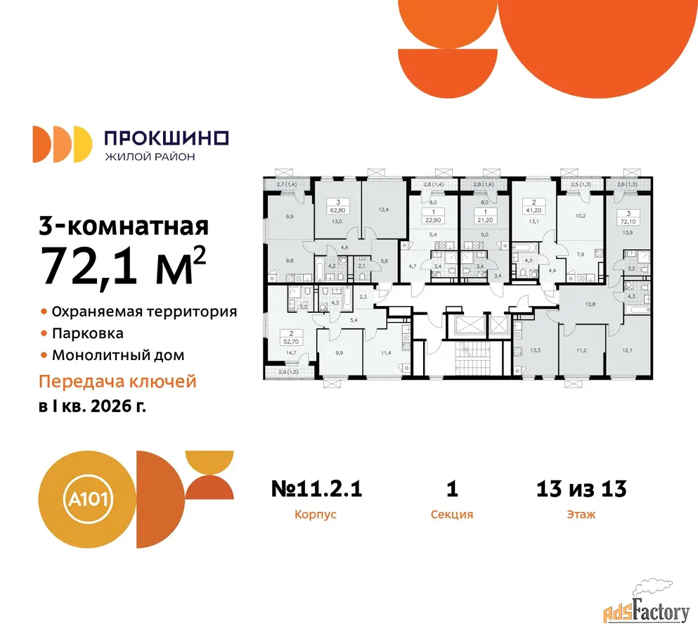 Артикул квартиры по базе застройщика 58К-11.2.1-72.