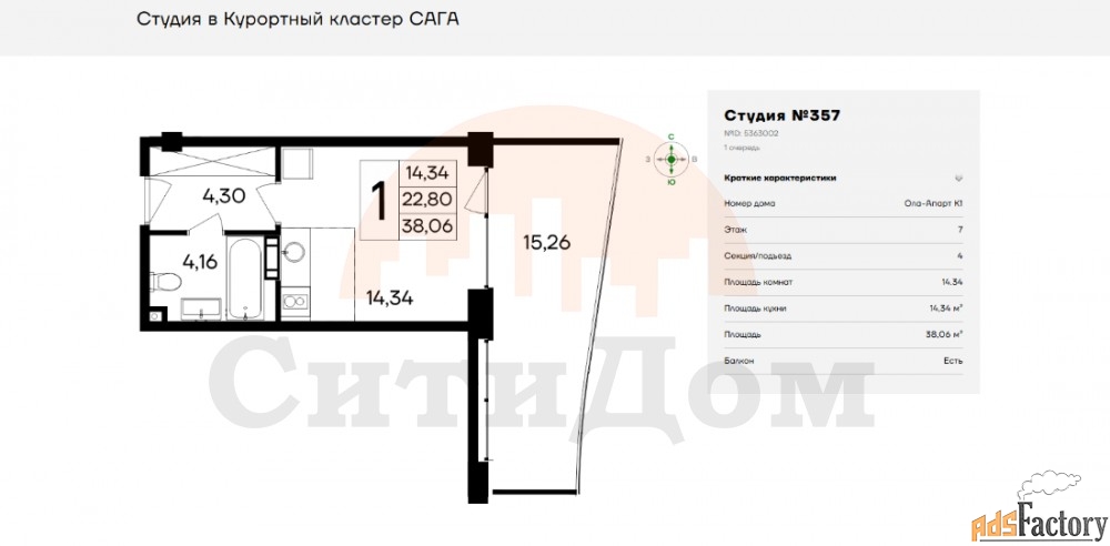 | Число комнат | 1 |