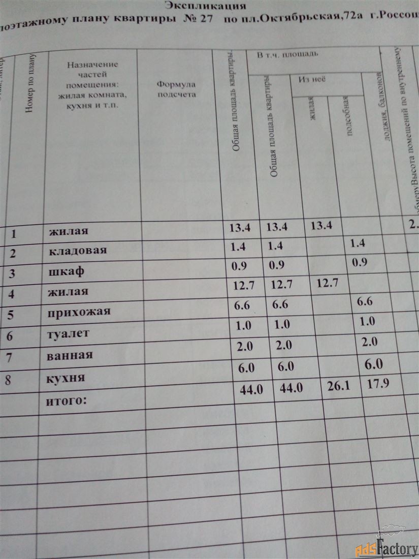 ID в ИМЛС: 47346372 Продам 2-комн. квартира г Россошь Октябрьская пл 72а. Дом: материал стен - кирпичный, вид дома - вторичка, год постройки - 1980, этаж - 5, этажность - 5, высота потолка - 2,55. Объект: сан.узел - разд., окна - двор+улица, пол - доска, балкон - 1, комнаты изолированы,, есть гардеробная. в подъезде домофон, есть подвал. во дворе благоустроенная, большая детская площадка, парковочные места. двор, подъезды чистые, дом тёплый, нет плановых отключений воды, поэтому горячая вода есть всегда, в квартире газовая колонка. в шаговой доступности автовокзал, храм, детский сад, школа, остановки, продуктовые и промышленные магазины, магнит, пятёрочка, кб, озон, wb, cdek. в доме почтовое отделение. чистая продажа, возможна ипотека. Несколько собственников. Никто не прописан. Без обременений.