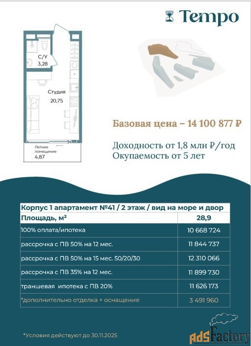 Апартаменты для отдыха и оздоровления в премиальном комплексе TEMPO.