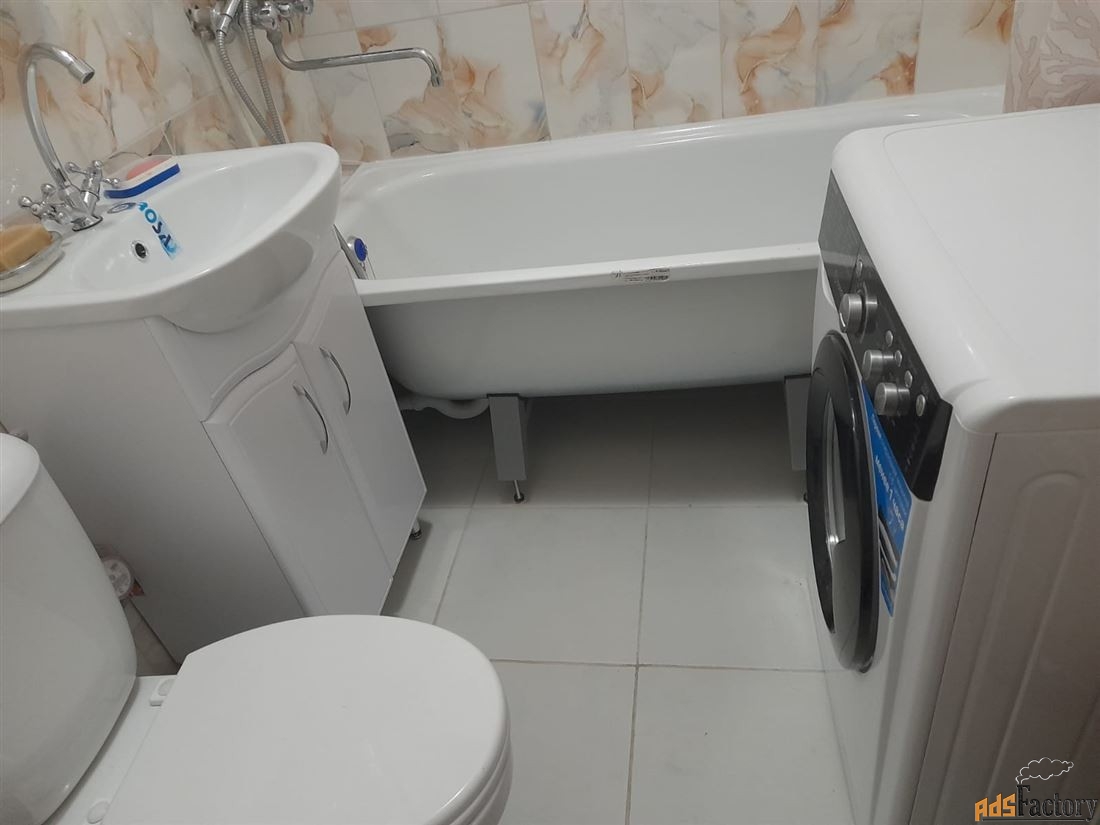 В квартире свежий ремонт, сантехника новая, двери новые, мебель и бытовая техника новые. Окна пластиковые. Ванна и сан узел совмещенные. В ванной газовая колонка Bosch. Сантехника и стиральная машина новые. На кухне новый кухонный гарнитур, стол, 4 табурета, плита газовая новая, холодильник 3-камерный. Балкон застеклен и утеплен. В зале диван и кресло-кровать, телевизор, стол и 4 стула. В спальне 2-х спальная кровать, шкаф-купе, пуфик.