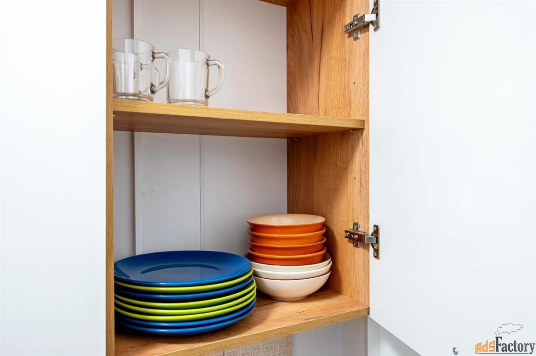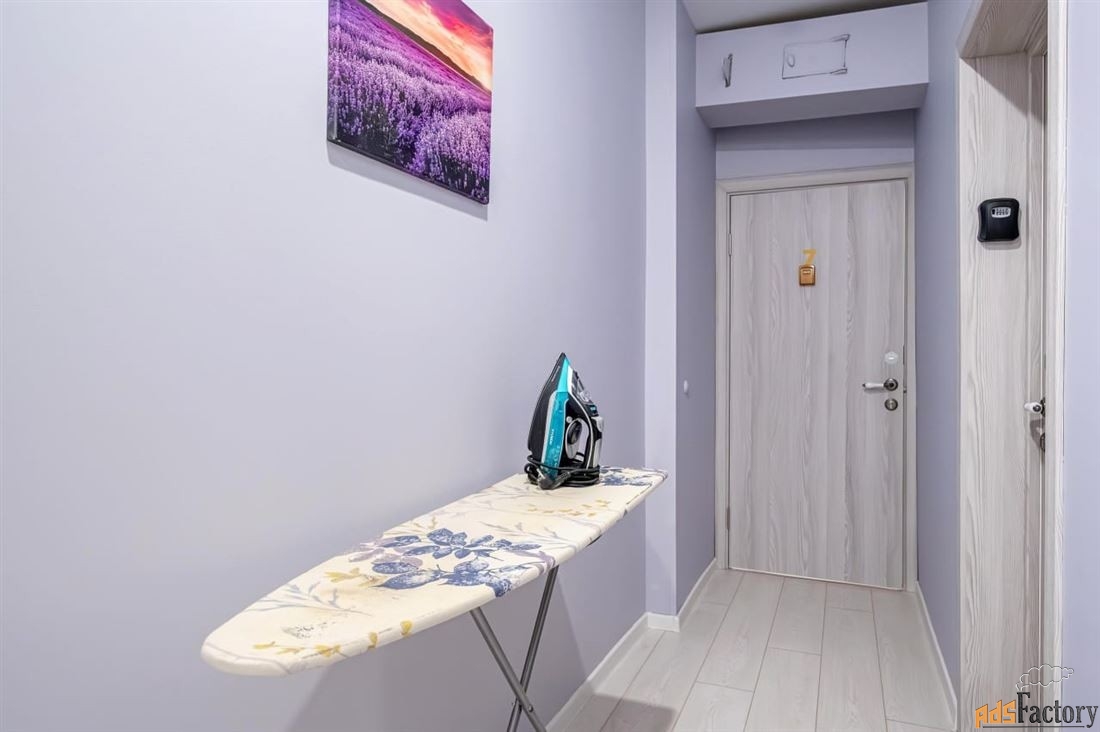 Есть Wi-Fi, телевидение.Из техники ( Холодильник, микроволновка, телевизор, фен,стиральная машина, плита, гладильная доска, утюг). Люстра с пультом управление. можно сделать свет ярче или приглушенее для вечернего спокойствия.