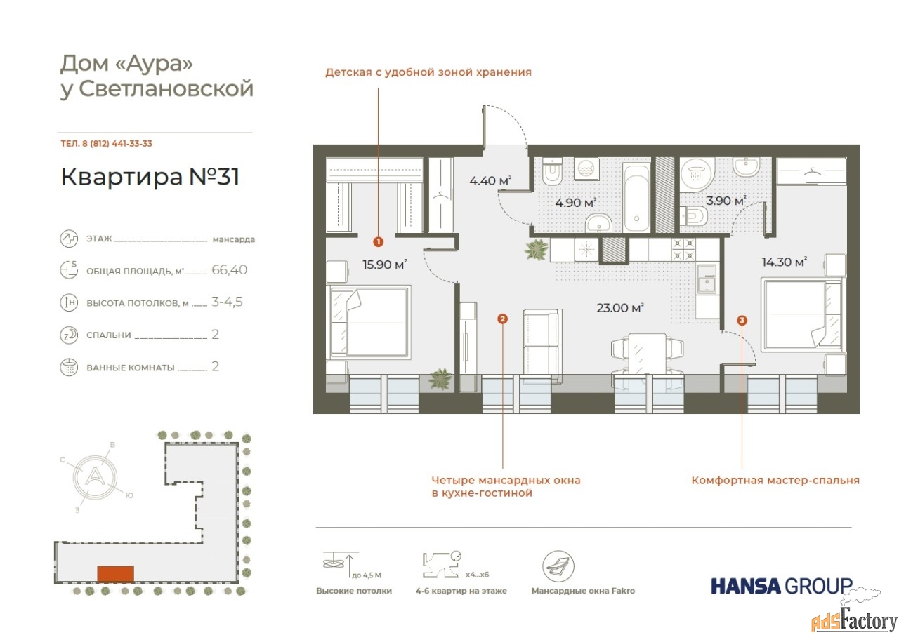 Жилая площадь 30,2 м2, кухня 23 кв. м, без ремонта.