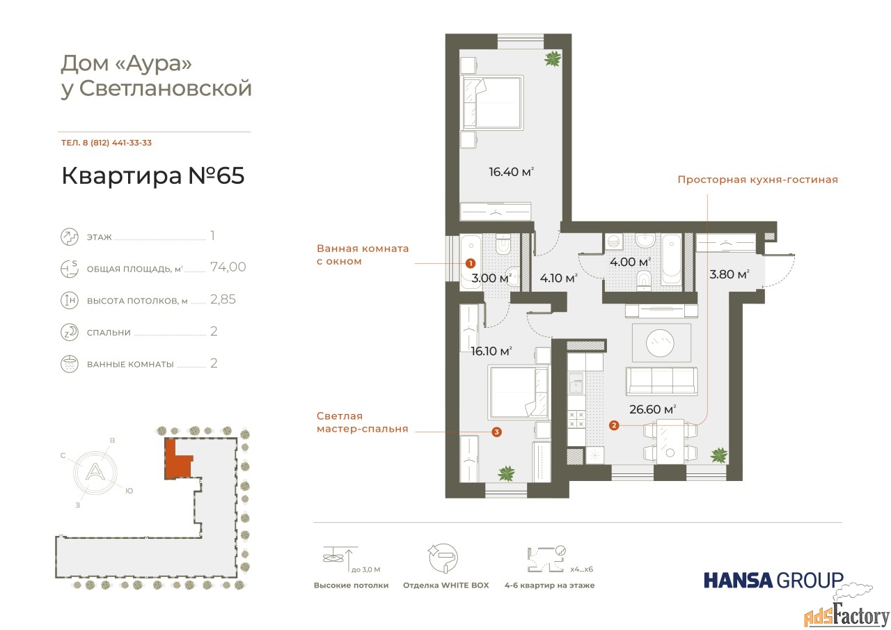 | Общая площадь (кв.м) | 74 |