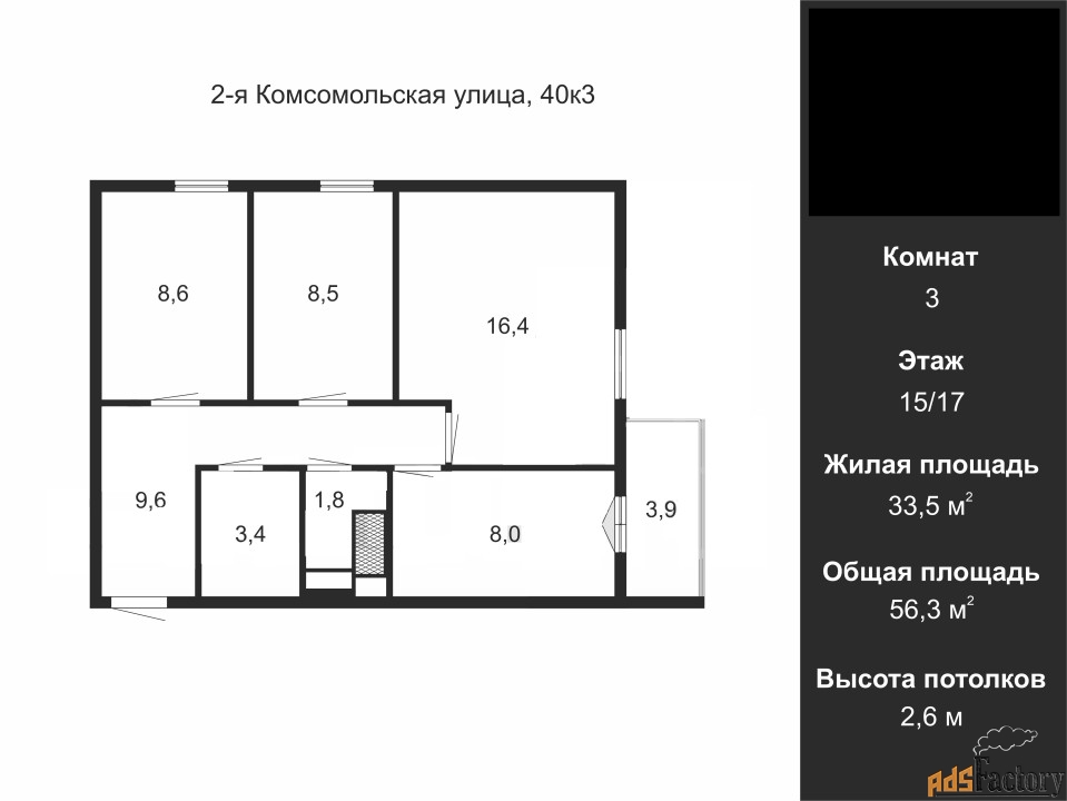 Высота потолков (м.) | 2,6 |