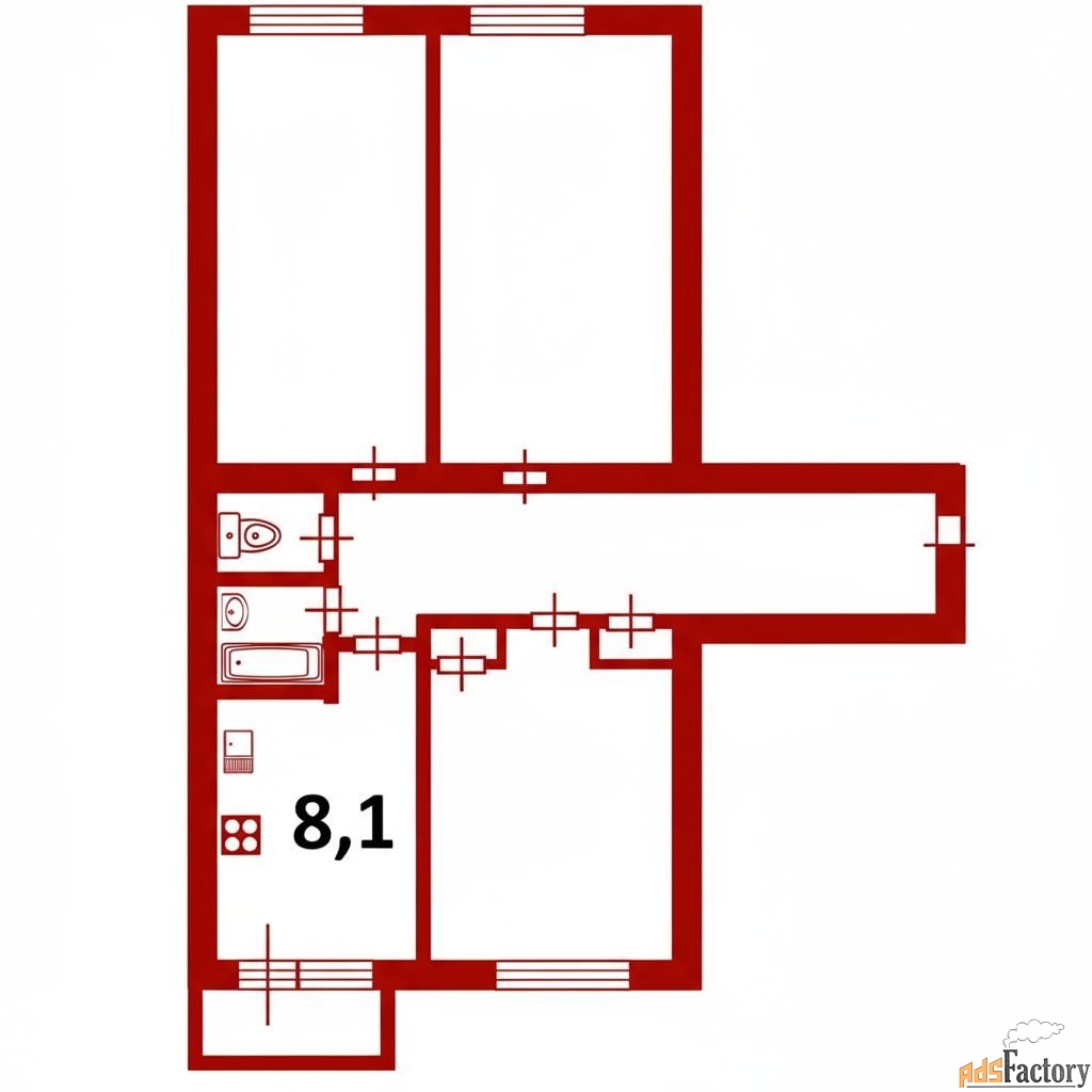 | Площадь кухни (кв.м) | 8.1 |