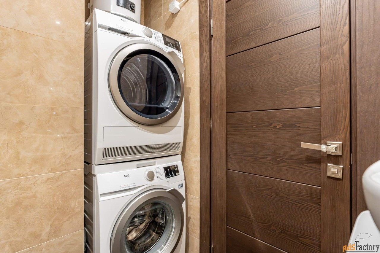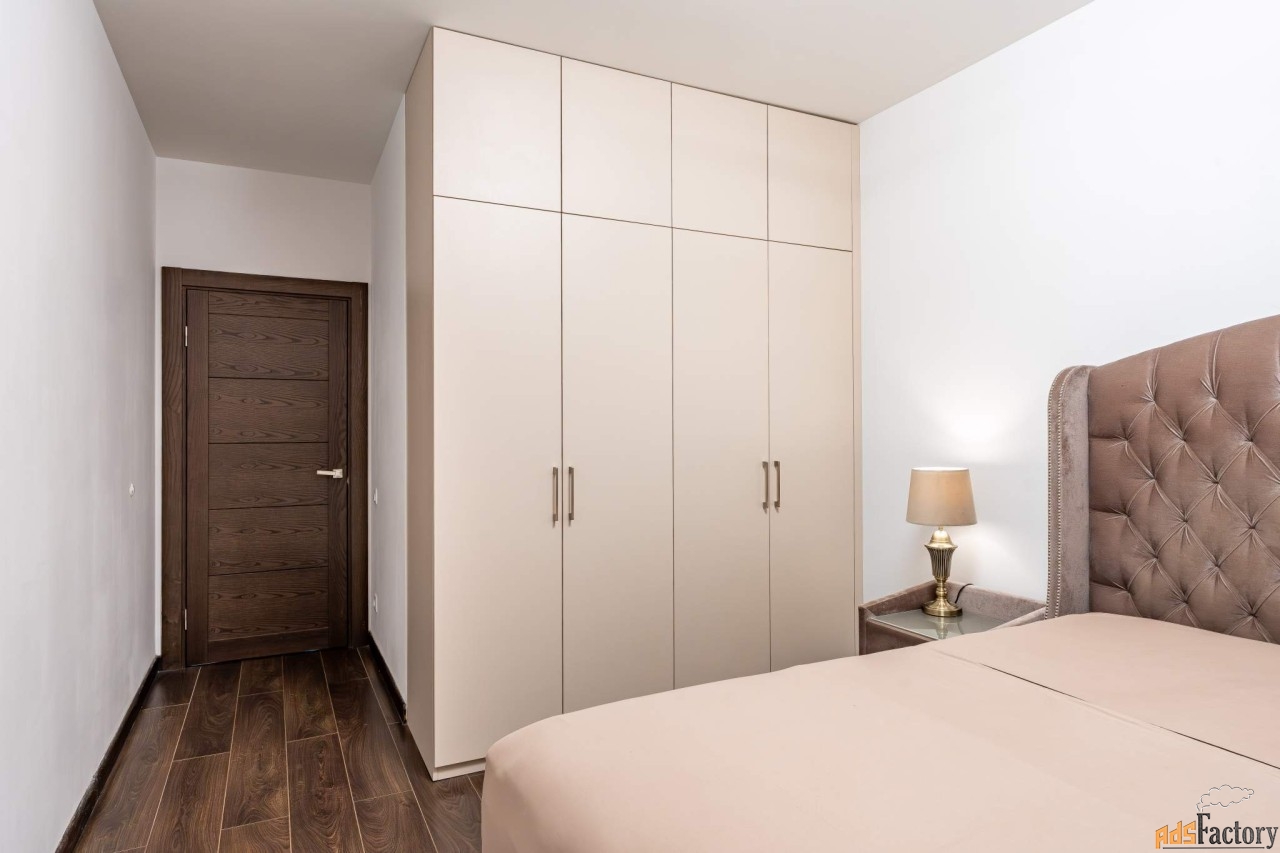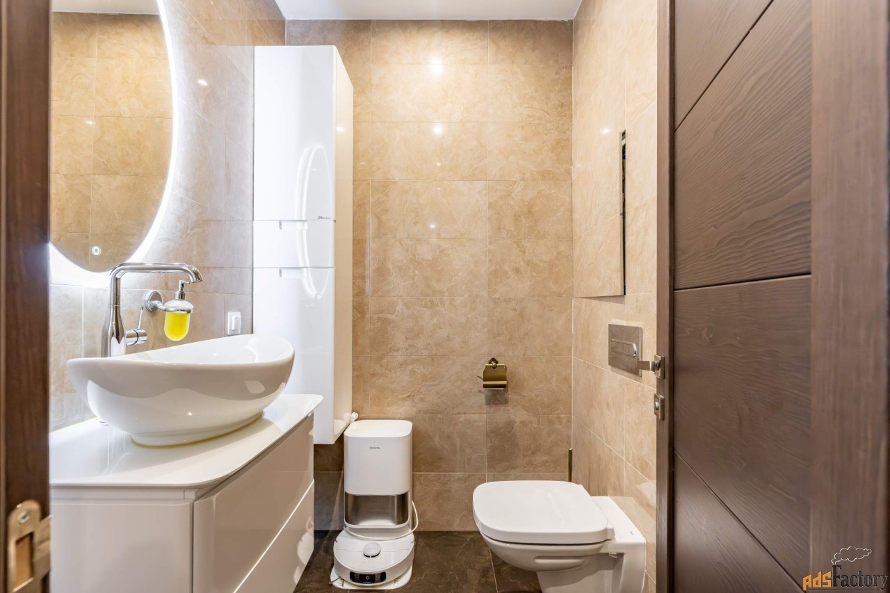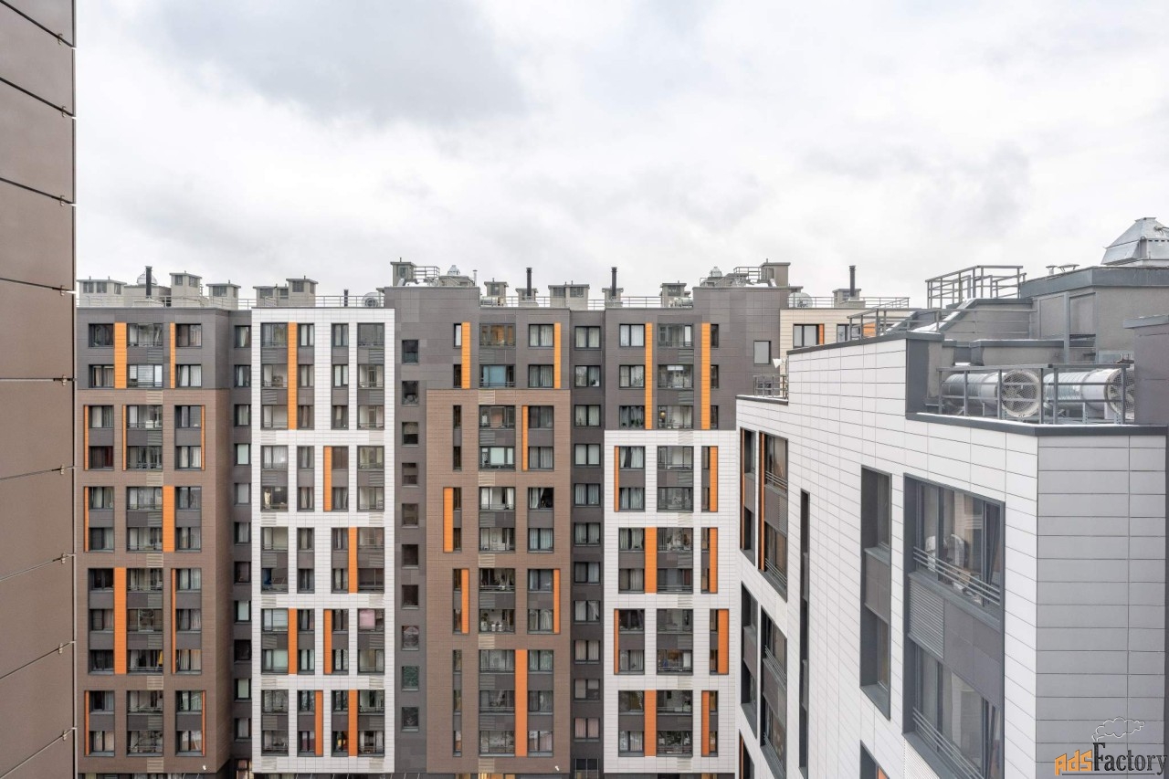 Квартира находится в современном комплексе в архитектурном стиле AECOM. Дизайнерские парадные, лифты OTIS, на первых этажах — магазины и сервисы. Закрытая территория, видеонаблюдение, контроль доступа. Во дворах — зоны отдыха, детские площадки, озеленение.