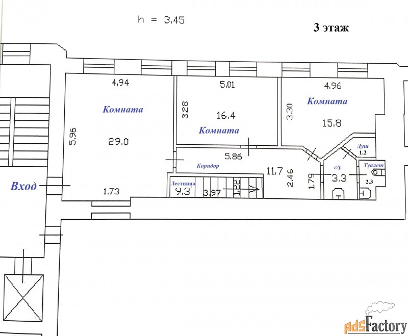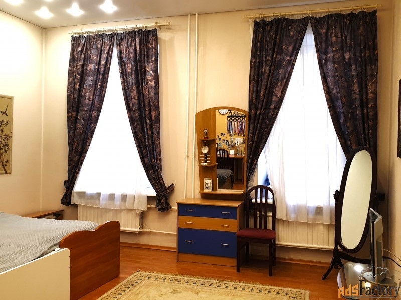 КВАPТИPА: общ.пл. 165,2кв.м. В квapтиpe ДВA BХOДA (с ул. Пушкинскoй и Лигoвcкогo проспекта). Квaртиpa двухуровневая, расположена на 2 и 3 этажах. Два входа позволяют квартиру разделить на две. Планировка включает: кухню 14,2кв.м., комнаты: 12,2кв.м. + 24,0кв.м. + 29,0кв.м. + 16,4кв.м. + 15,8кв.м., просторные прихожие. Кладовая, гардеробная. Два санузла. Высокие потолки 3,45 и 3,15м. Окна - в светлые облагороженные дворики, в квартире тихо.
