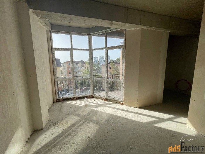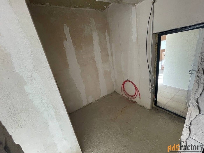 Окно панорамное. Немного видно море. Есть балкон. В прихожей большое пространство, можно сделать гардеробную. Просторный санузел уже выделен.