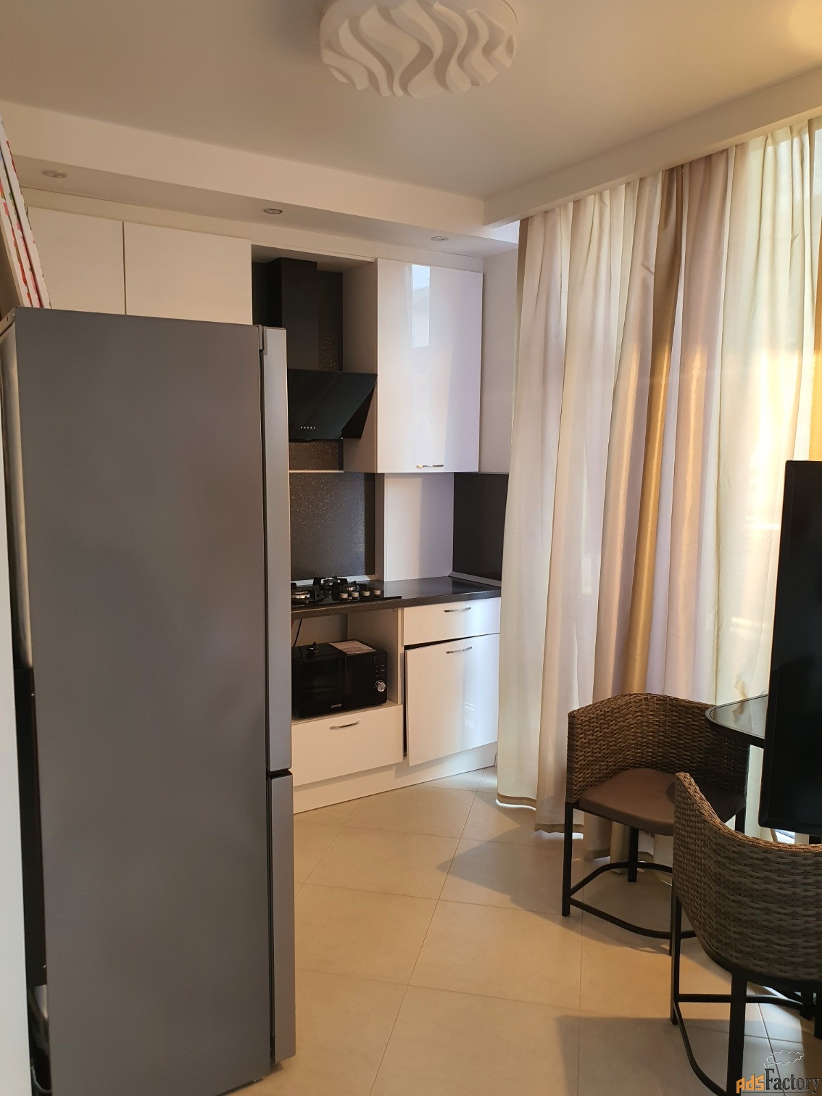 Шикарная квартира в клубном доме, ЖК Грин-Пэлас. Спланирована в кухню гостиную и спальню, есть балкон с видом на бассейн. Своя закрытая территория. 2 детских, 2 взрослых бассейна. Детская и спортивная площадки. Лаундж зона и барбекю. Система умный дом. Хороший добротный ремонт, останется мебель и техника. Отличный вариант для сдачи в аренду. Как для жизни, или как летняя квартира. Магазин и остановка в двух шагах.
